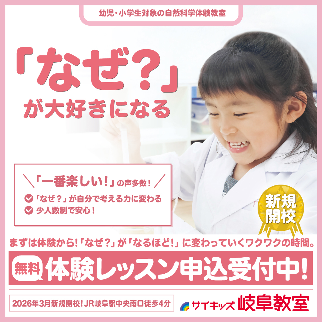 ※教室へのお問い合わせにつきましては,可能な限りお電話ではなく,【メール】 または 岐阜教室専用申込フォーム 【お問合せ・お申込みはコチラ】 からご連絡いただけますようお願い申し上げます。