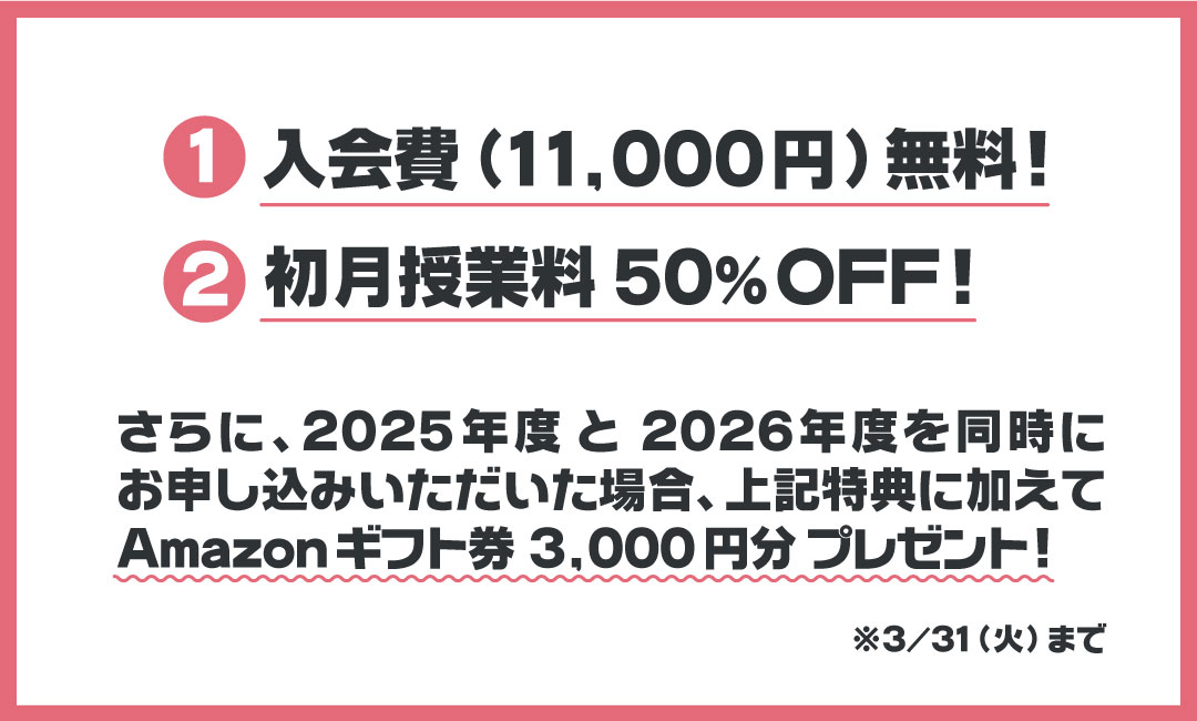期間限定・教室別特典あり!