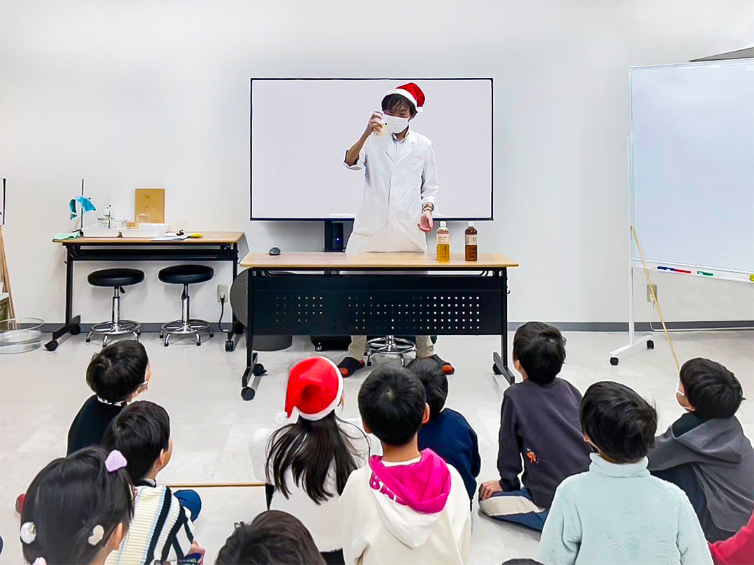 目の前で繰り広げられる不思議な実験の数々!「えっ,どうして!?」と驚きながら,科学のふしぎを体感できるショータイムです。クリスマスらしい特別な演出も加わり,心に残るひとときになること間違いなしです。