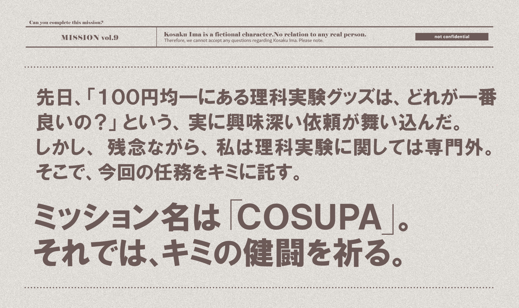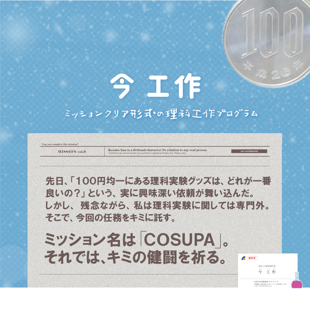 それは「100円均一に眠る理科実験グッズ」の中から,最もコストパフォーマンスに優れた“最強の実験グッズ”を探り出すこと。